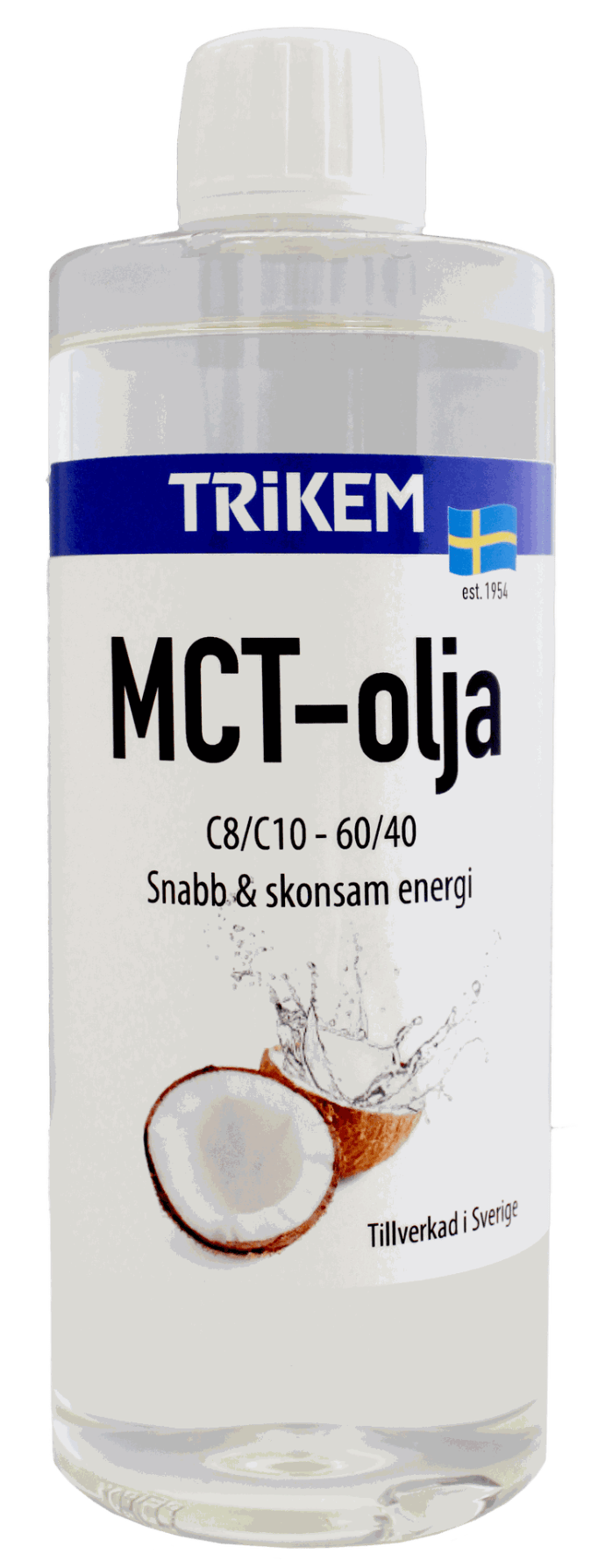 MCT-olie baseret på 100% kokosolie med 62,4% caprylsyre (C8) og 36,4% caprinsyre (C10). Disse giver hurtig, skånsom og ren energi. MCT-olien har en neutral smag.