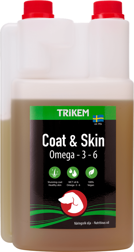 Coat & Skin er en nærende olie med essentielle fedtsyrer, omega-3 & -6, MCT-olie og lecithin.